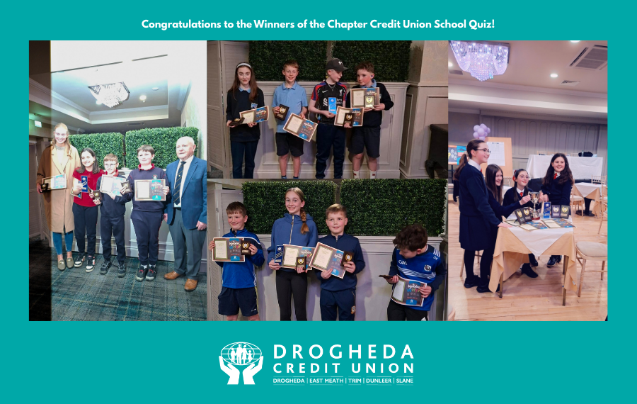 Drogheda Credit Union would like to say a huge congratulations to our winners of the Chapter Credit Union School’s Quiz who will be advancing to the final in the RDS on 19th April!