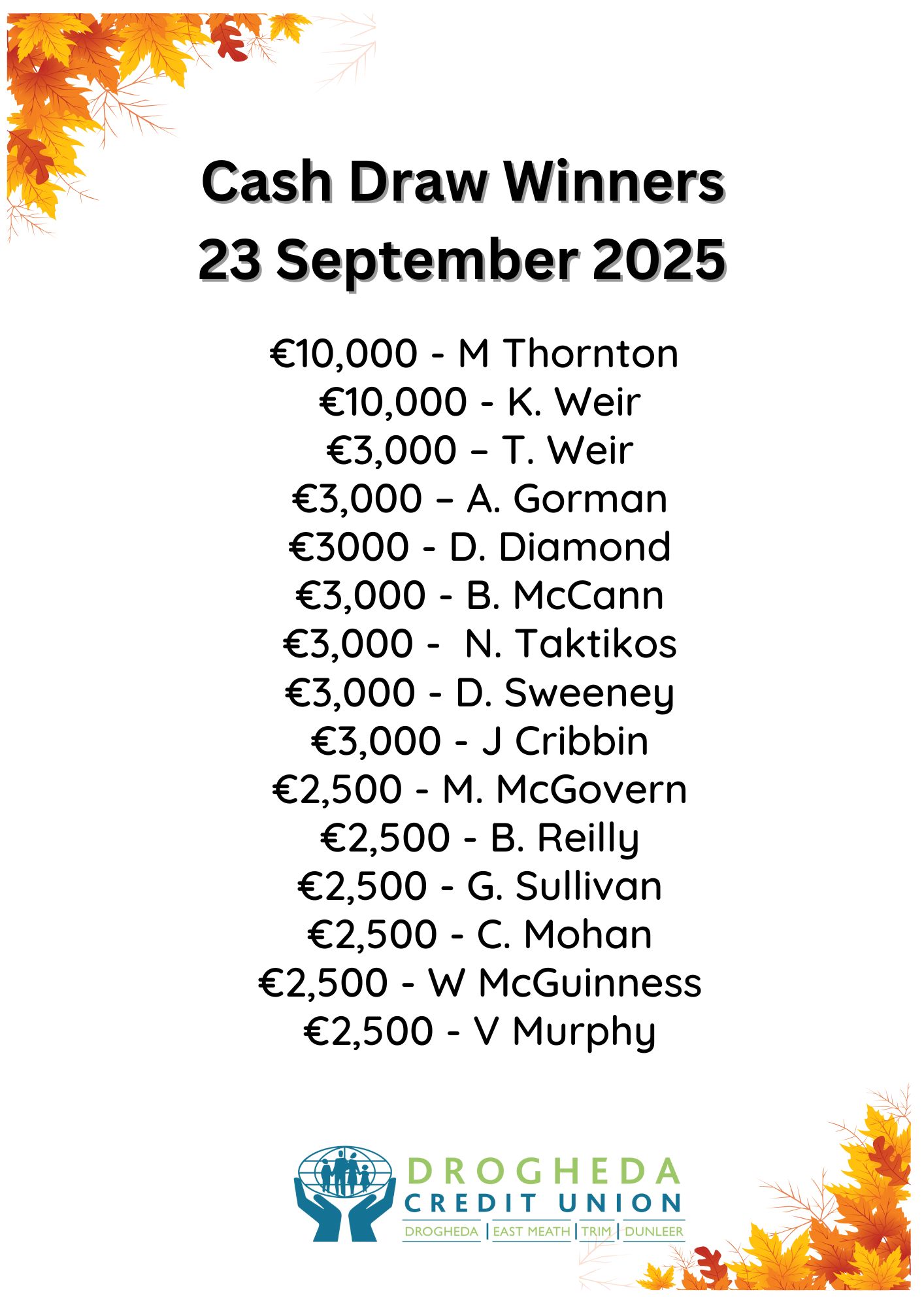*Please note all members signed up to the car draw will automatically be entered into the cash draw.
